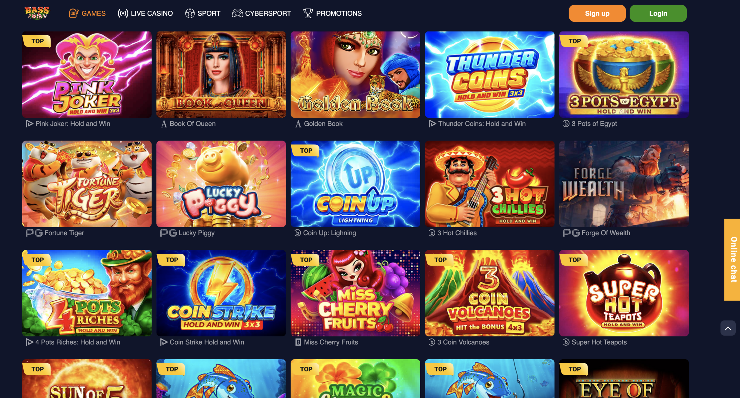 All games can be found in the Games section and are grouped under the following categories: Top Games & Bonus Games.