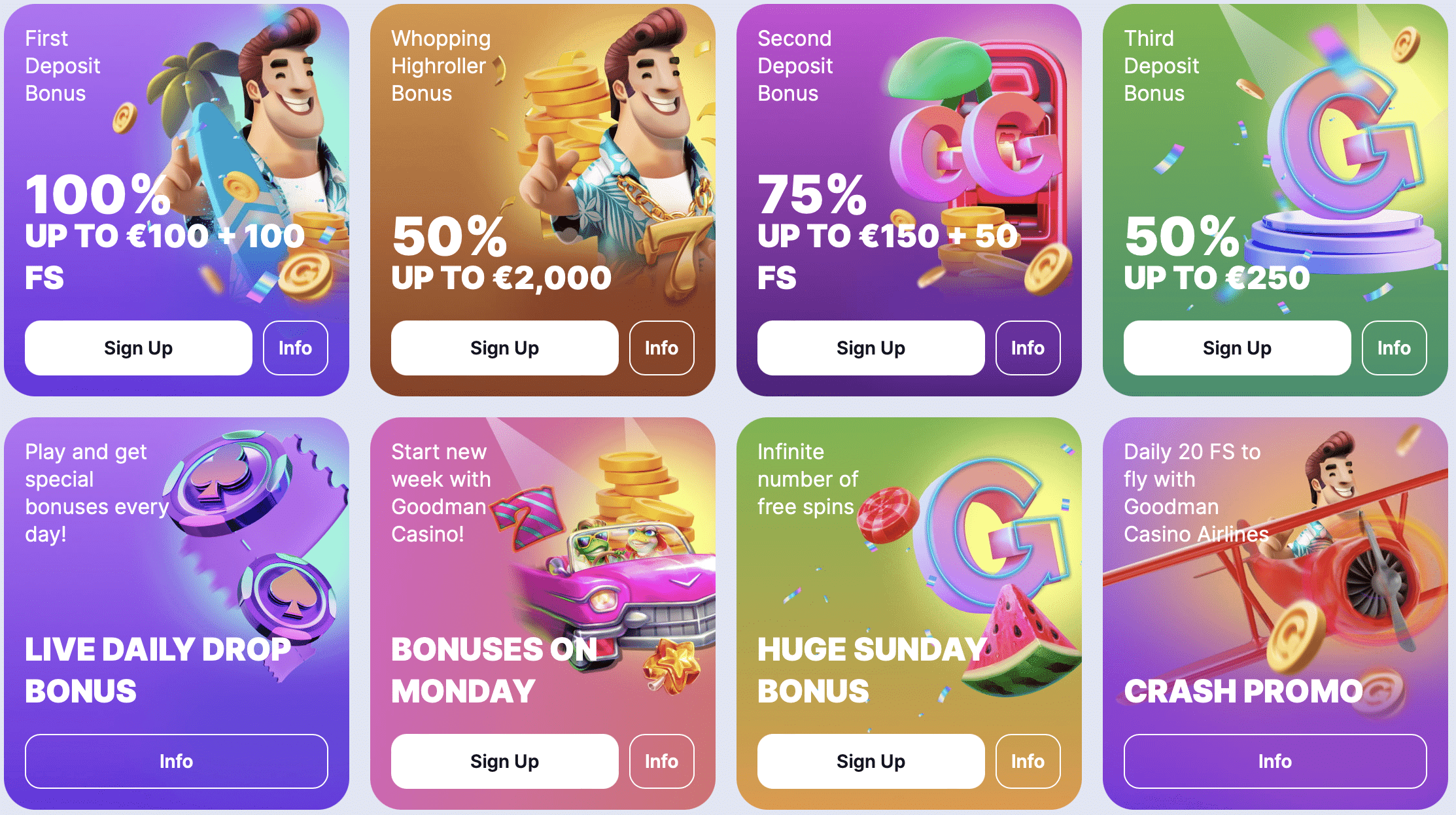 GoodMan Casino has a huge range of fun and exciting games. In fact, currently, there are over 9,000 super casino games for everyone to enjoy and win loads of cash. These hundreds of games have been sourced from various providers in the gaming industry.