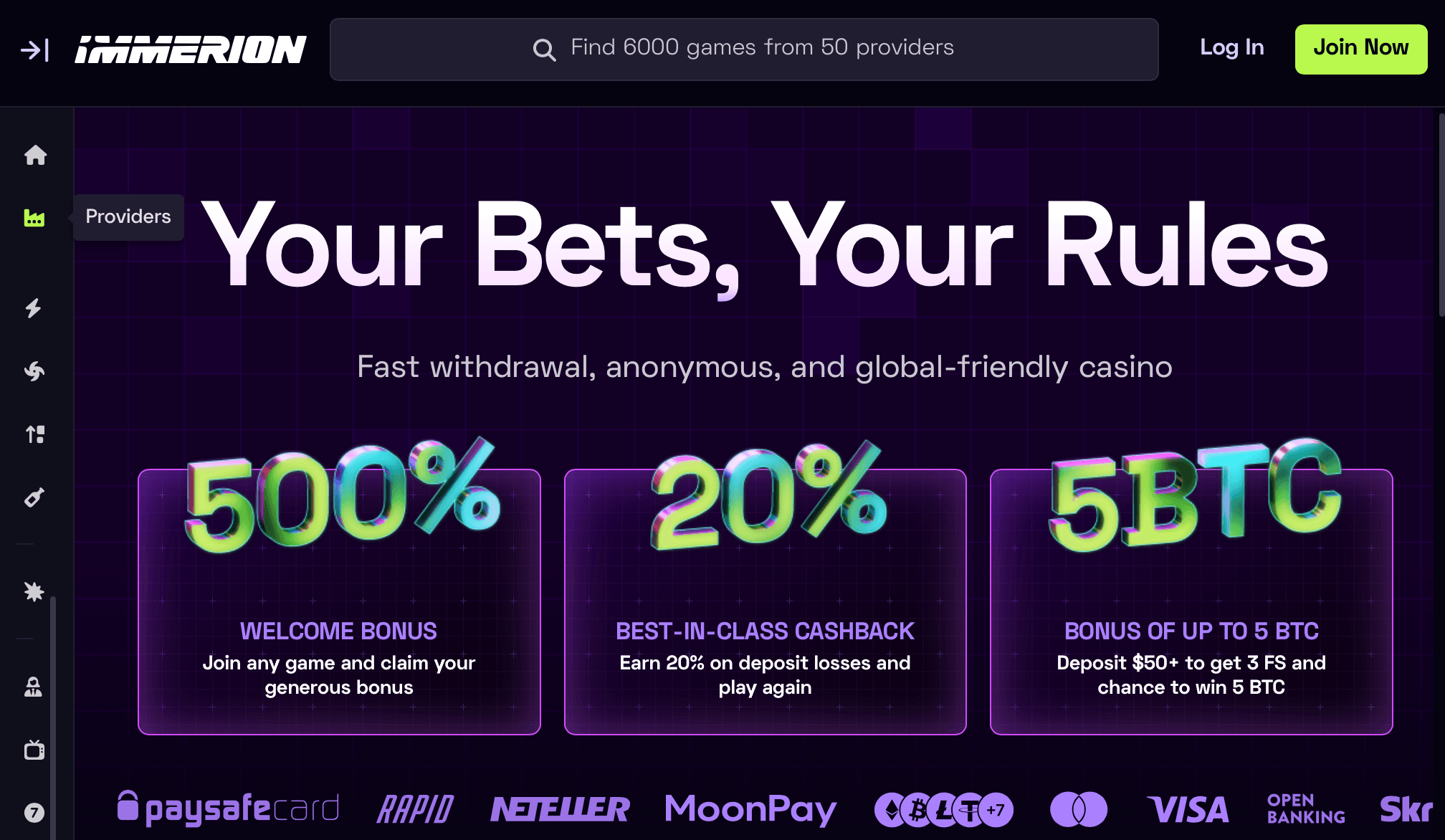 Immerion Casino is an exciting online gaming destination that burst onto the scene in 2023, bringing a fresh perspective to the world of online casinos.