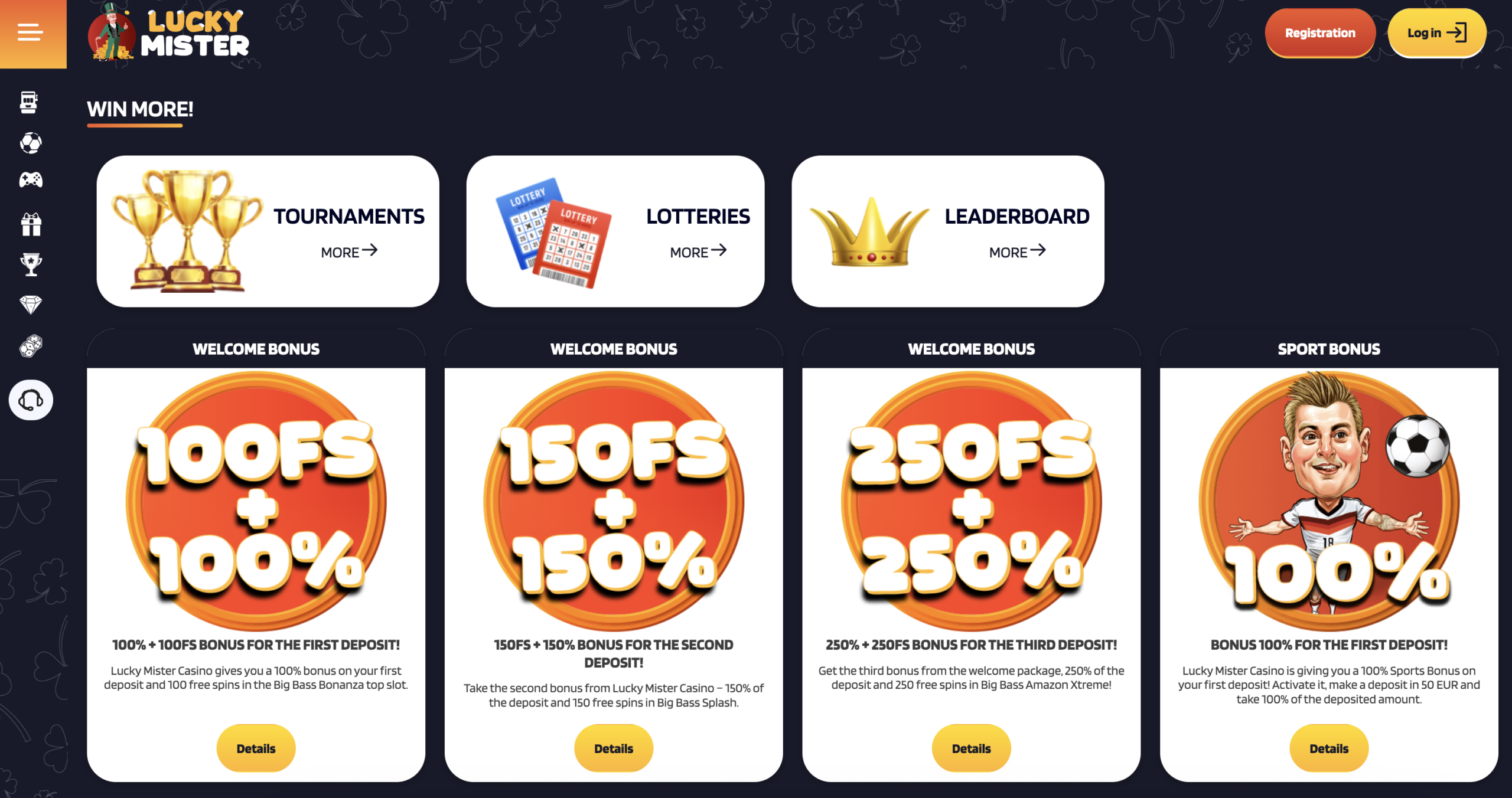 Once registered, you can immediately explore the slot library, live casino games, and ongoing promotions. The streamlined sign-up process reflects Lucky Mister Casino’s focus on fast access and user-friendly design.