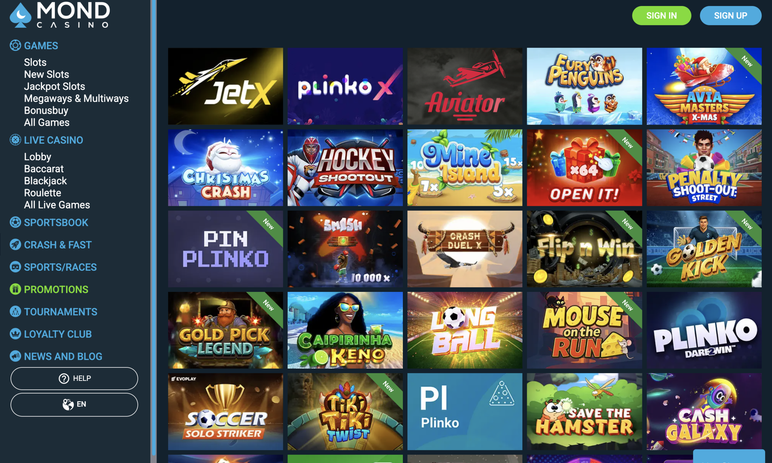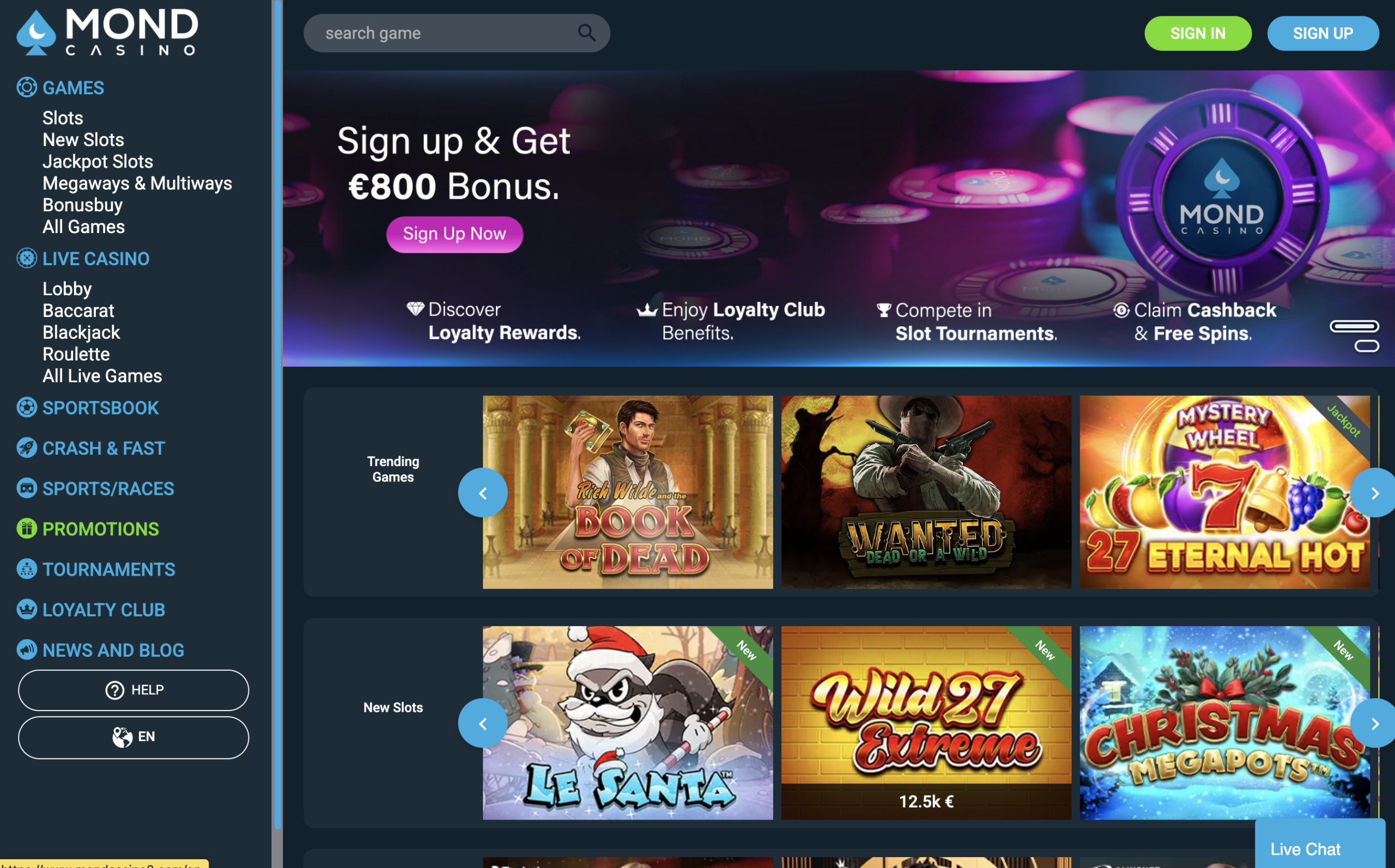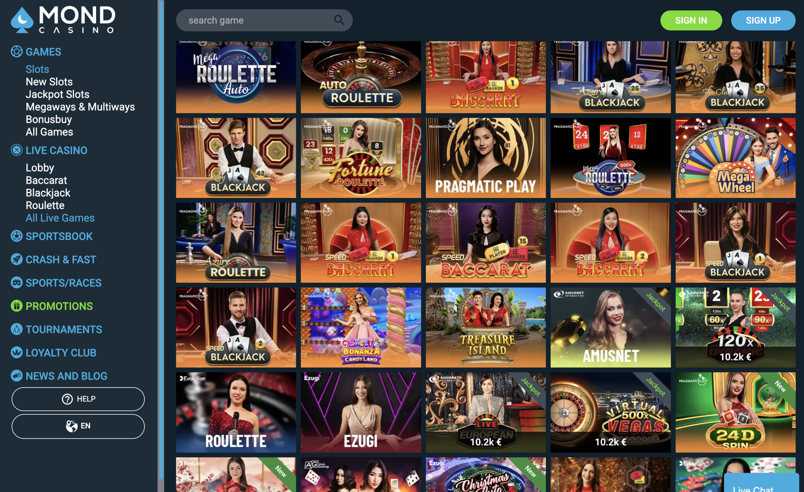 Games at Mond Casino