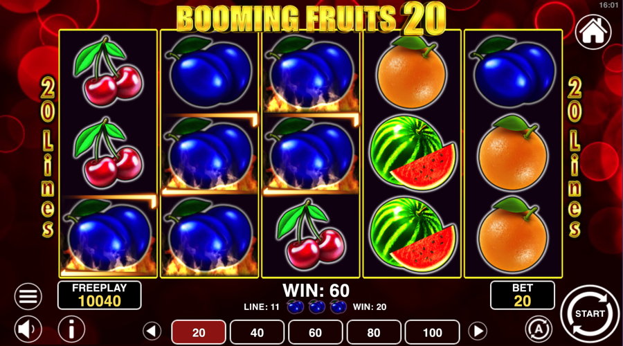 A screen that shows 5 scatters at once delivers one of the strongest standard wins in Booming Fruits 20. The symbol has a simple role and keeps its impact easy to track for players who like regular payouts that appear on the main reels.
