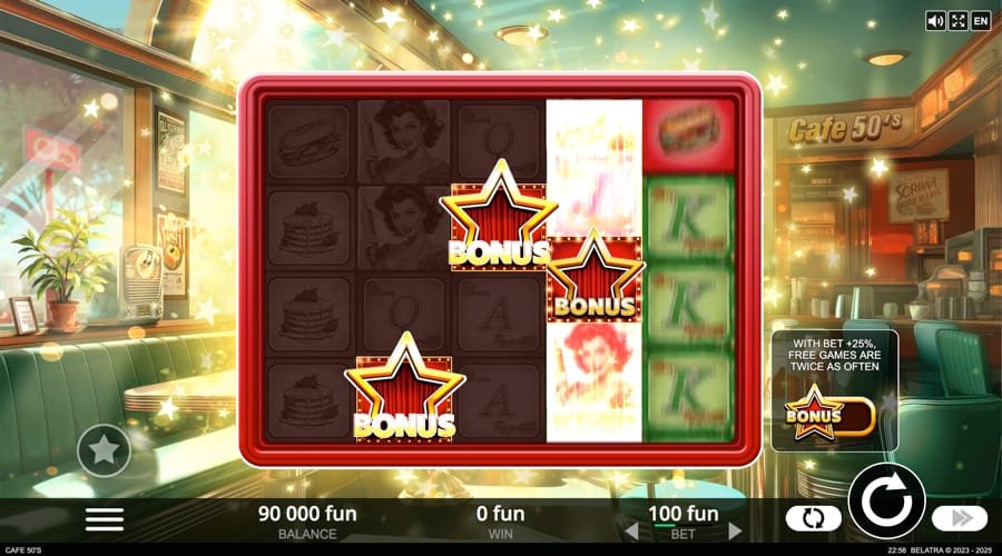 Travel back in time in Café 50s, one of Belatra Games’ most unique slots. It’s a slot that’s inspired by the pin-up era and American diners of the 1950s.