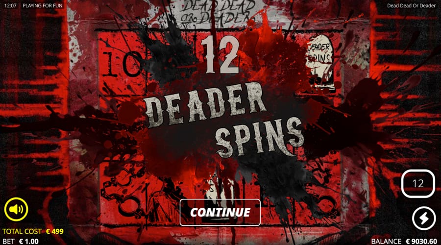The screen in Dead, Dead or Deader slot machine glows in deep red and dust tones, so you know it is not a soft western.