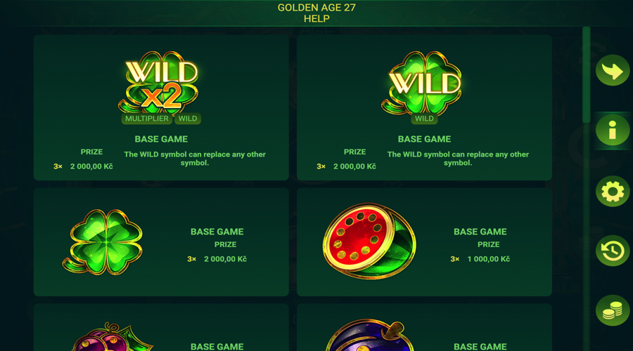 Golden Age 27 keeps the ruleset tight, with most variation coming from how the clover symbol interacts with line outcomes. The feature list focuses on base game clarity and a single rule change that can lift value when higher stake settings are chosen.