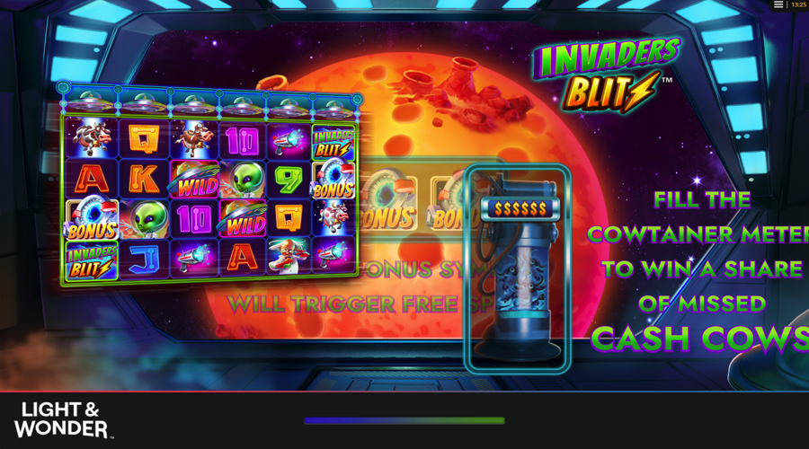 Invaders Blitz rewards attention to Cash Cow placements and how close the Cowtainer Meter sits to a trigger.