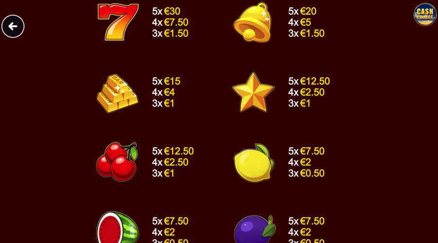 The Cash Collect icon can appear on reel 5 and triggers a collection step at the active stake. Once it lands, every visible coin value is gathered and paid as one total. The symbol does not act as a wild, which keeps payline wins and collected prizes separate in the same spin.