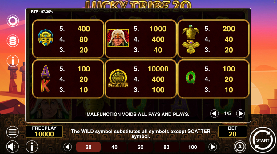 Lucky Tribe 20 usually appears with a demo version, allowing play with virtual credit to observe the pace and features.