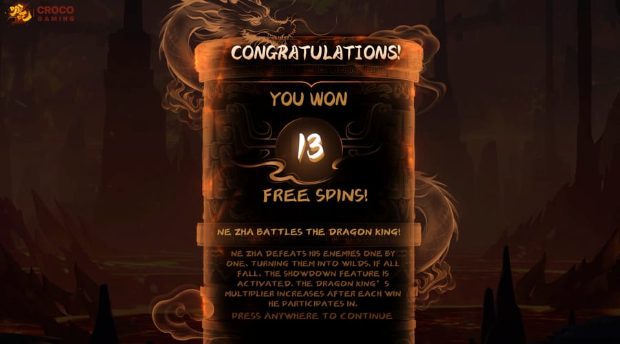 Wins in Ne Zha slot game form when matching symbols line up on neighbouring reels from the left. After a win, those symbols break away and leave room for new icons to fall.