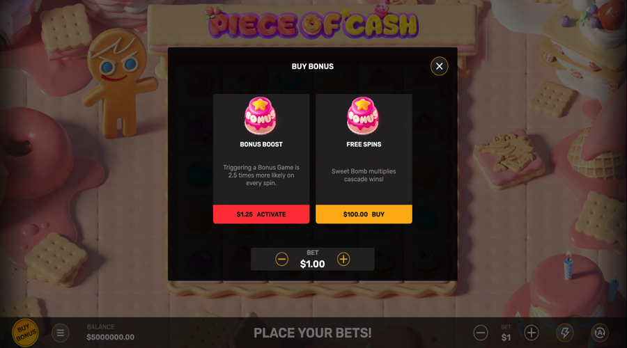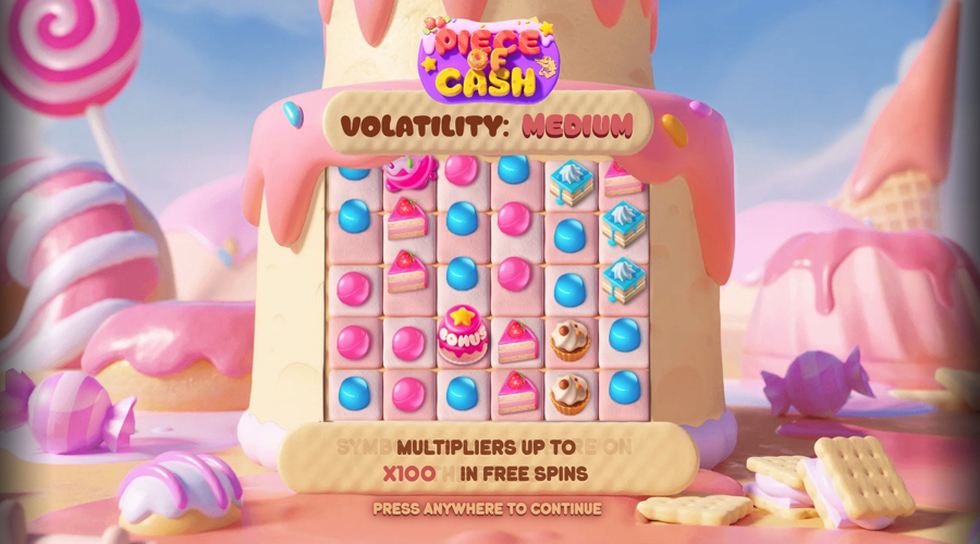 Piece of Cash uses a sweet shop theme where cakes, candies, and sugar bombs fill every spin.