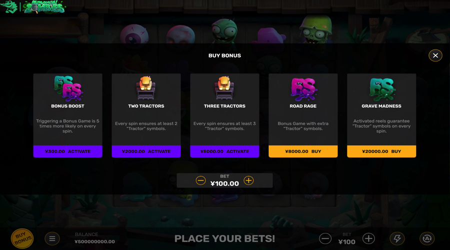 The slot combines Granny Tractor Wilds, a Zombie Raid Free Spins round, several special spin modes, and optional bonus buy entries.
