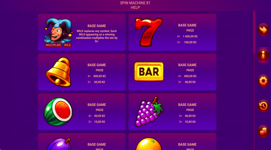 Spin Machine 81 keeps all mechanics in the base game, so feature moments resolve on the main grid without a dedicated bonus screen.