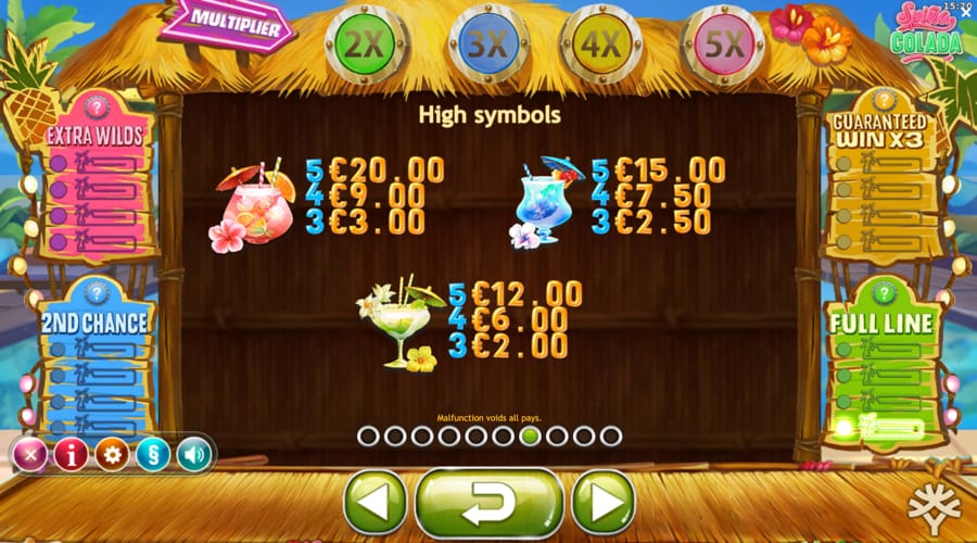 Spina Colada slot machine also comes with an RTP rate of 96.3%. This percentage is slightly above the average one featured on most online slots. It shows that you can expect to get a return of around 96.3% of the money you wager on this game.