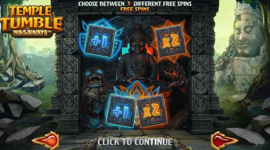 Now, you trigger the bonus round whenever you destroy a stone block. You initially win 6 Free Spins, but before the bonus starts, you’d need to choose one of the three modes you’d like to put in play.